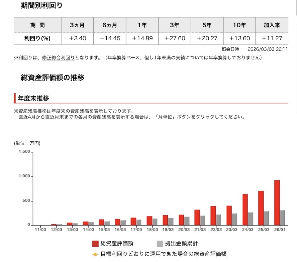 企業型DCは選べる商品が限られているため、10%以上を継続して出せているだけで「かなり優秀」と言えます。また、この利回り1年だけでなく3年、5年で見ることも重要です。