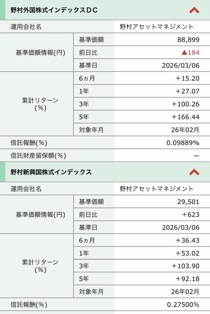 | 項目 | 野村外国株式インデックスDC | オルカン(全世界株式) |