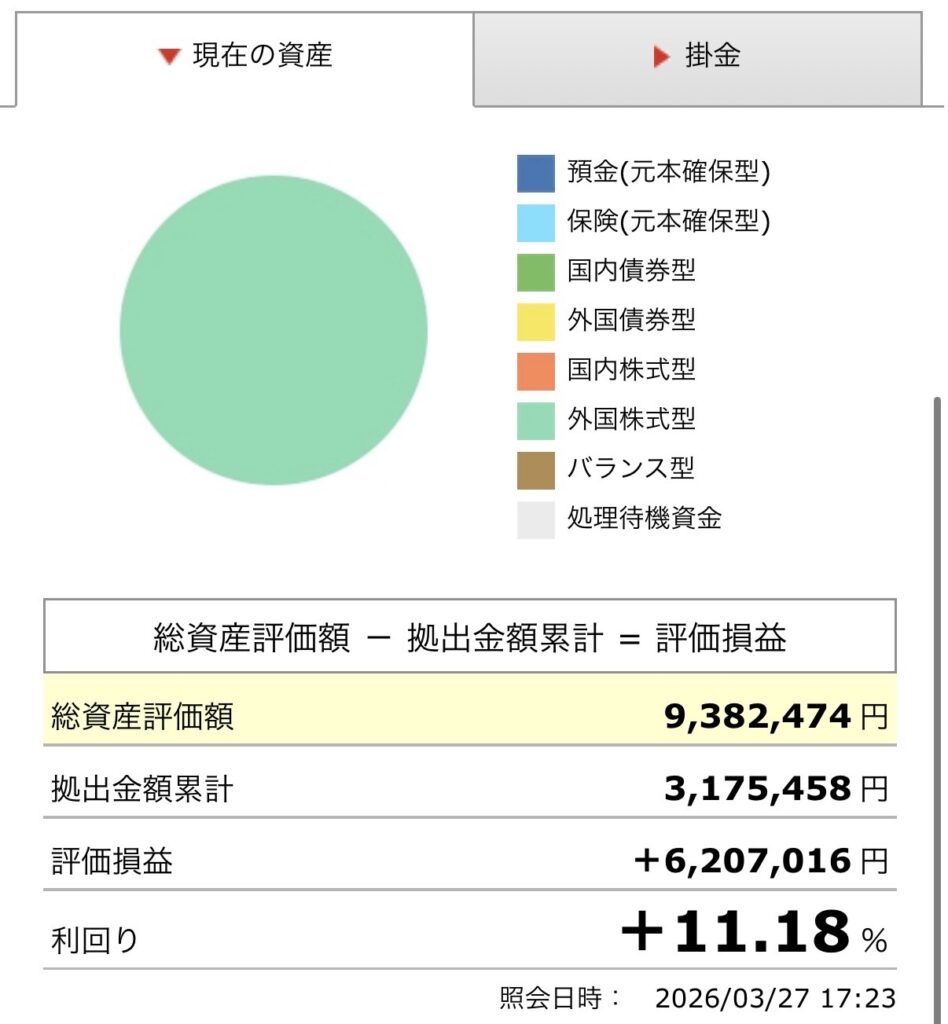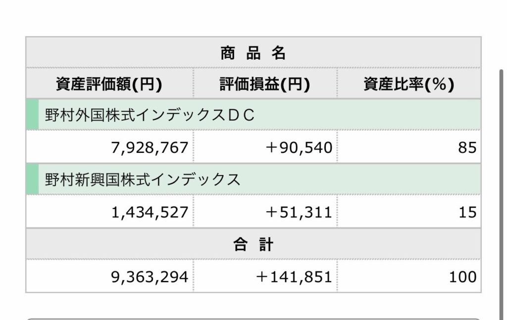 NISAは米国のみなのでDCの大きな金額だけでも分散投資できて気持ちが少し軽くなりました。