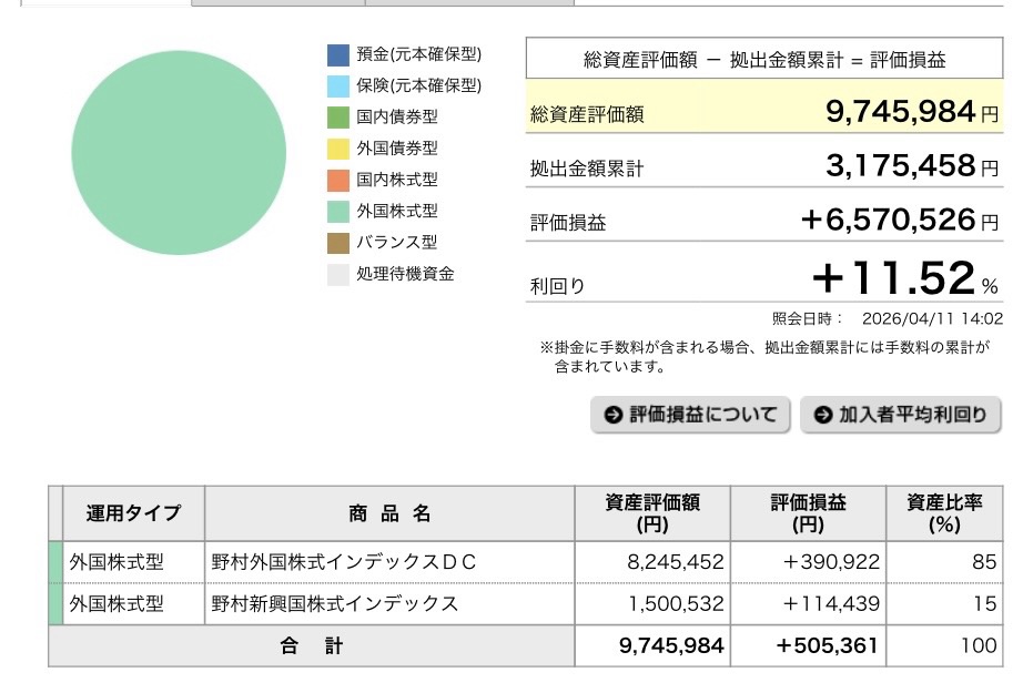 DCはあくまで長期投資。**相場が下がった日は「安く積み立てられているんだ」**と、ドルコスト平均法の力を信じることで、ブレずに攻めの姿勢を維持できました。